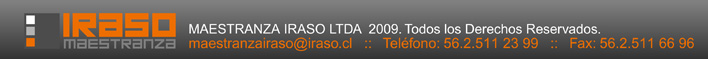 Maestranza Iraso tiene como gran virtud la experiencia adquirida en los más de 15 años que lleva dentro del mercado metal-mecánica, lo que nos permite asegurar que nuestros ingenieros,   técnicos y operadores le entregaran la asesoría y confiabilidad que su empresa necesita .                        |